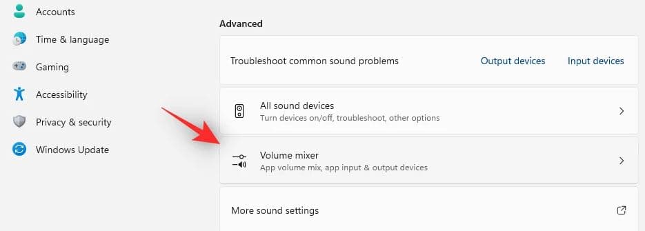 - Her under Avanceret sektion skal du vælge Volume Mixer,