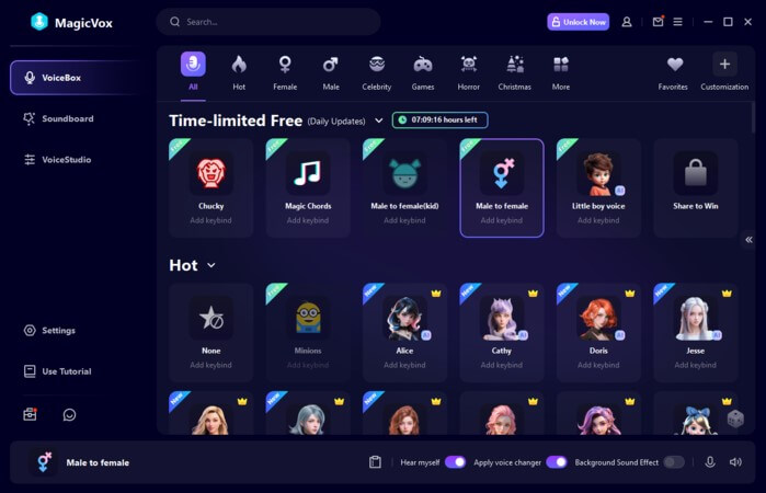 - Trin 4: Nu MagicVox-appen på din pc separat, og vælg en stemme, der skal lyde som robot. Vælg den samme stemme fra tastebindinger, din stemme vil blive ændret.