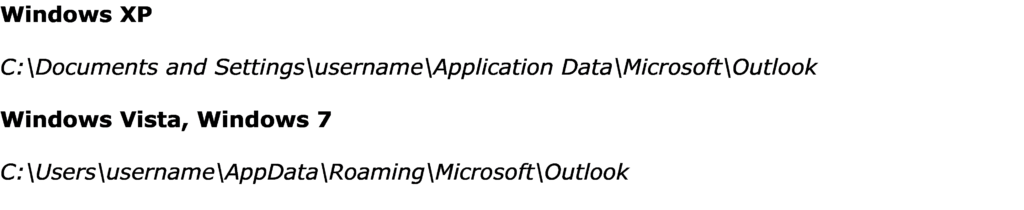 Indstillingsfilen, der findes her, vil blive navngivet som: profilename.xml, hvor 'Profilnavn' bruges til at angive det respektive Outlook-profilnavn.