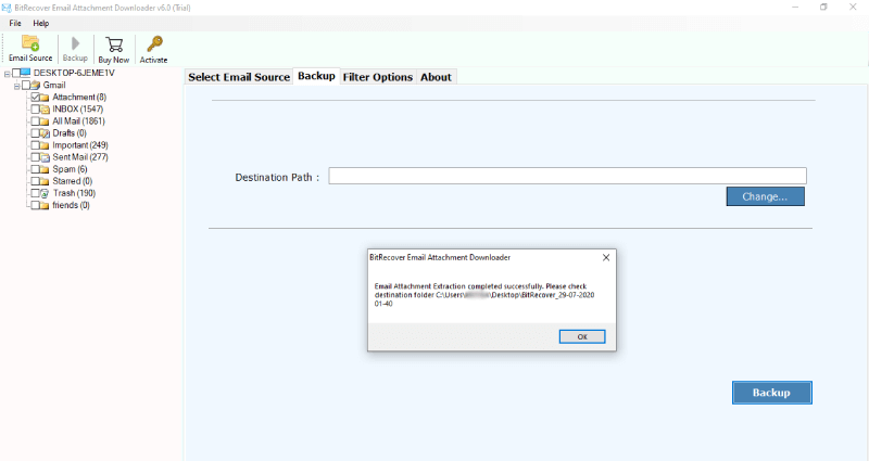 - Vælg BMP som en gemmemulighed og en destinationssti