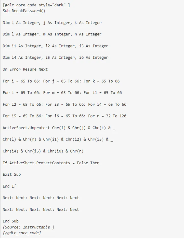 Andre Excel filtypenavne, som f.eks.xlsx(til almindelige Excel-projektmapper) og.xls(for ældre Excel-versioner), understøtter ikke makroer eller VBA-kodelagring. Så hvis du vil arbejde med VBA-makroer og moduler i MS Excel, så er det vigtigt at bruge.xlsmfilformat. Men hvis du sidder fast i en situation, hvor din VBA-fil i Excel er adgangskodebeskyttet, så kan det være afgørende at bryde VBA-adgangskoden i Excel af følgende årsager.