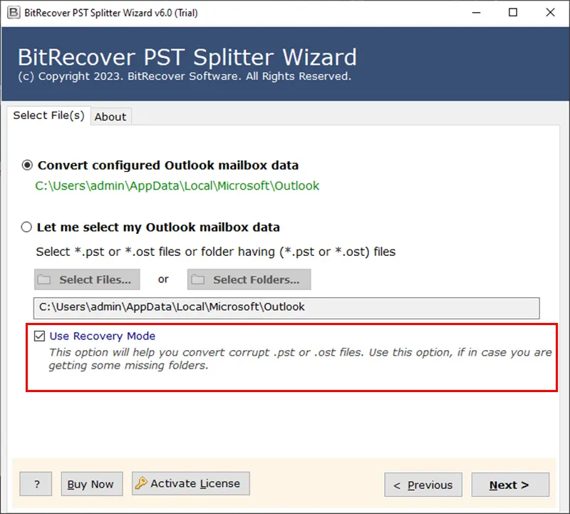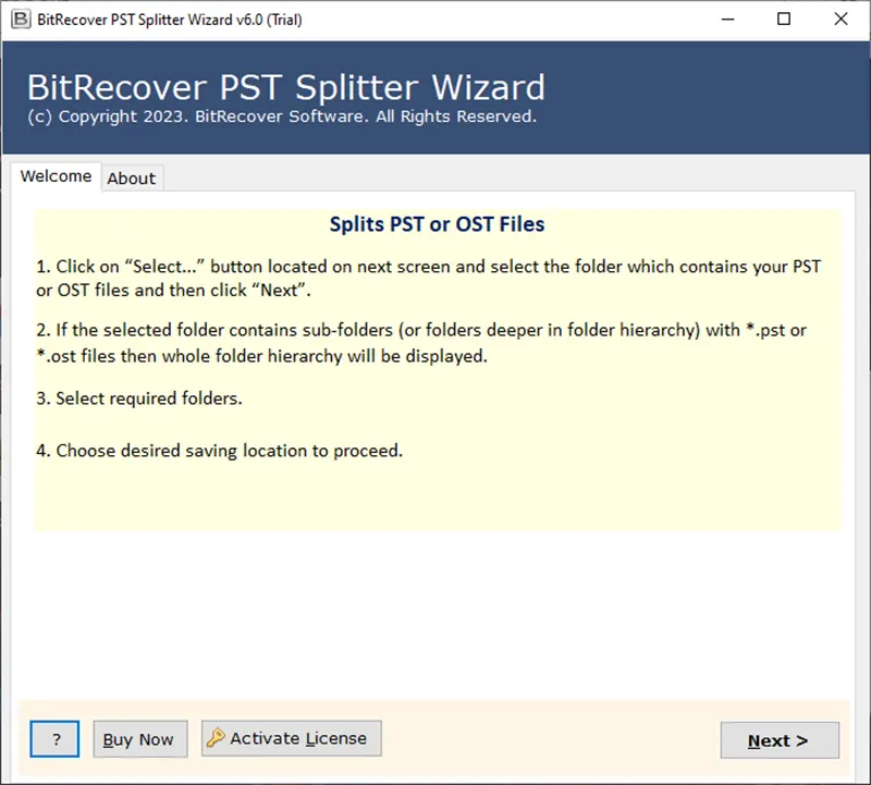 Vi kommer til at tage hjælp fra de bedste og mest fantastiskeBitRecover OST Splitter Wizardfor at komprimere og reducere OST-filstørrelsen. Denne software anbefales stærkt på markedet, fordi den har en række funktioner til at komprimere OST-fil.