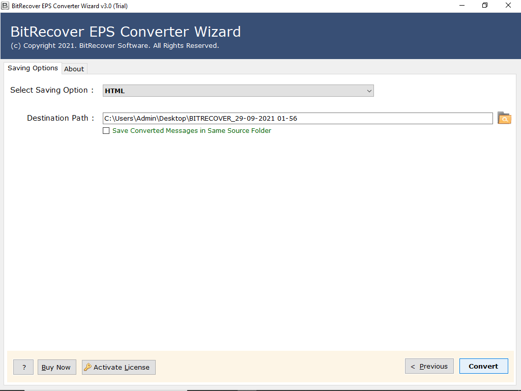 - Vælg outputplacering:Den bedste applikation er EPS til HTML Converter. Værktøjet giver dig mulighed for at angive den ønskede sti til din destination. Denne funktion giver dig mulighed for at gemme det resulterende output på den angivne placering.