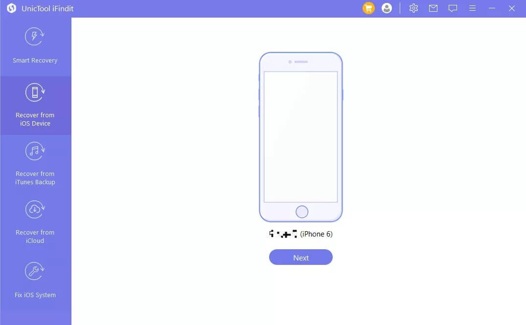 - 1Tilslut din enhed til din computer via USB eller thunderbolt-kabel, og lad iFindit registrere det. Når din enhed er fundet, skal du klikke på "Gendan data fra iOS-enheder”-knappen i venstre side af skærmen.