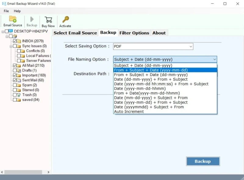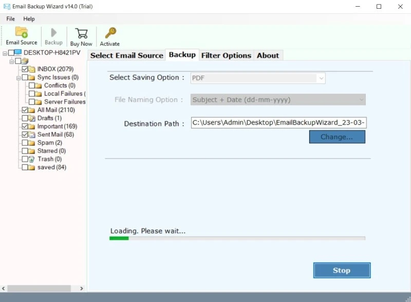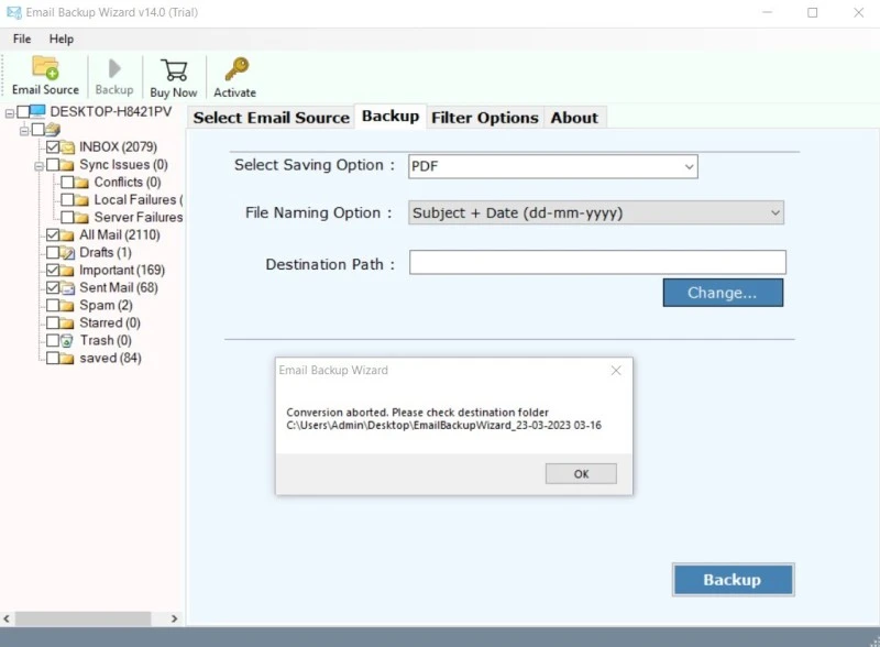 - Klik påBackupknappen for at downloade Hotmail-e-mails til din pc.