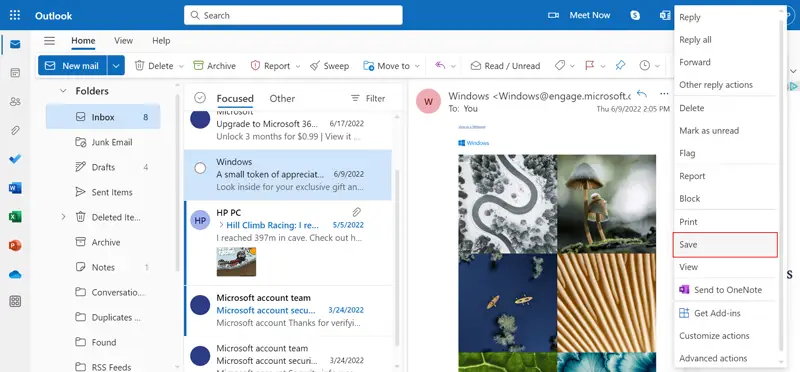 - Gentagede samme trin for at gemme en anden e-mail fra Hotmail til en computer.