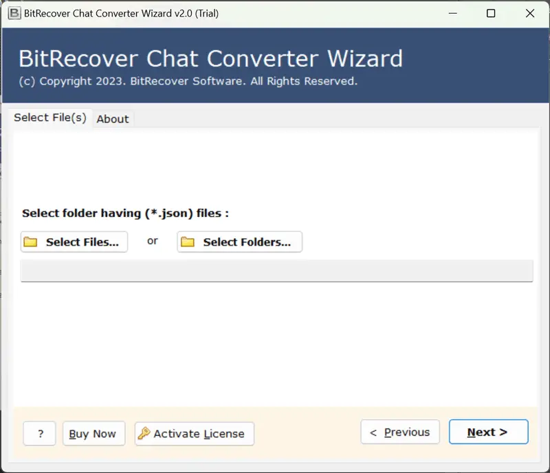 - Start Google Chat til PDF Converter og vælgVælg Filer eller Vælg mapperfor at tilføje Chat JSON-filer i software-GUI.