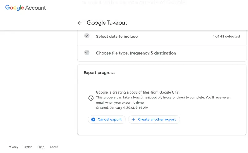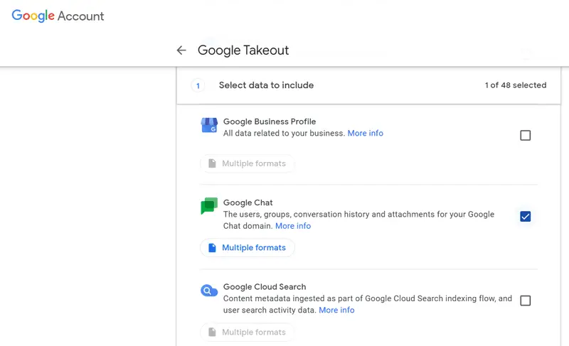 Trin 1: Eksporter Google Chats i JSON-filer ved hjælp af Takeout