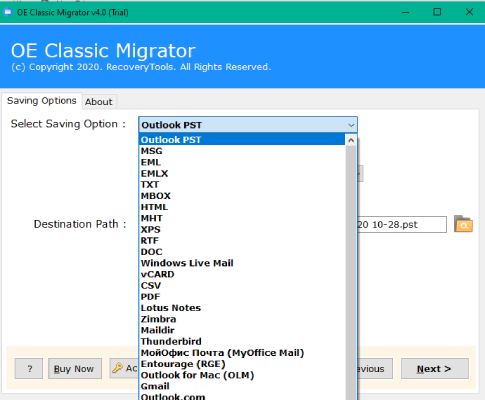 Alle Windows understøttende værktøj:Værktøjet understøtter med succes alle udgaver af Windows OS. Brugere kan nemt eksportere OE Classic til Outlook på Windows 10, 8.1, 8 og andre udgaver.