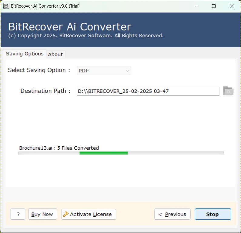 • Det giver også en demoversion, der giver dig mulighed for at konvertere 5 AI-filer gratis.