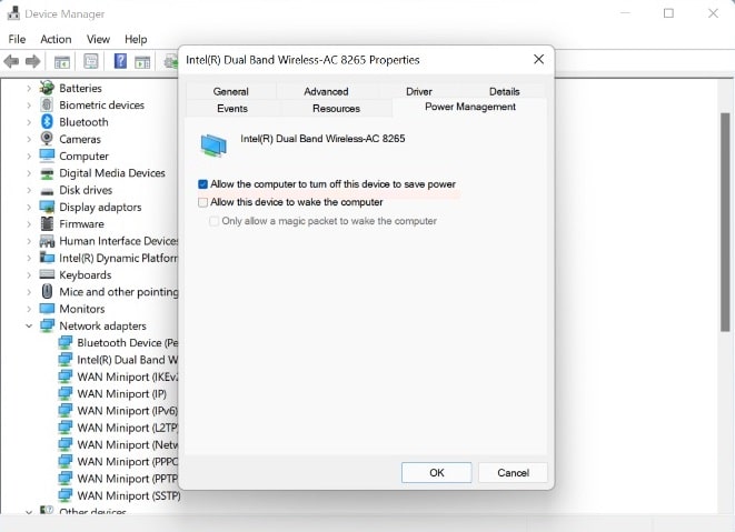 Hvis du bemærker, at wifi ofte afbrydes eller langsom wifi-hastighed på Windows 11, bør du foretage ændringer i netværksadapterens strømstyringsindstillinger.
