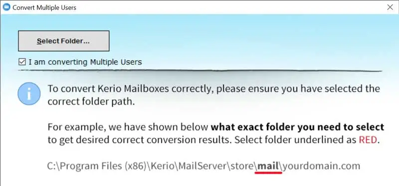 - Start Kerio til MDaemon Migration Tool og vælg en mulighed fraVælg Filer eller Vælg mapper.