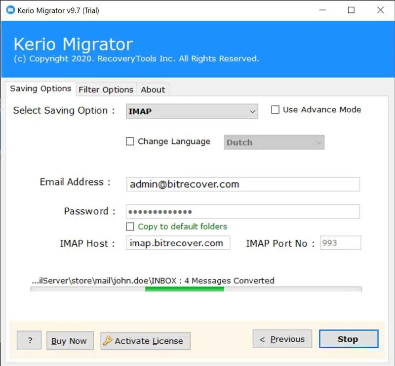 - Kerio Connect til MDaemon migration ergennemført med succes. Gå nu til MDaemon-konto for at se importerede data.