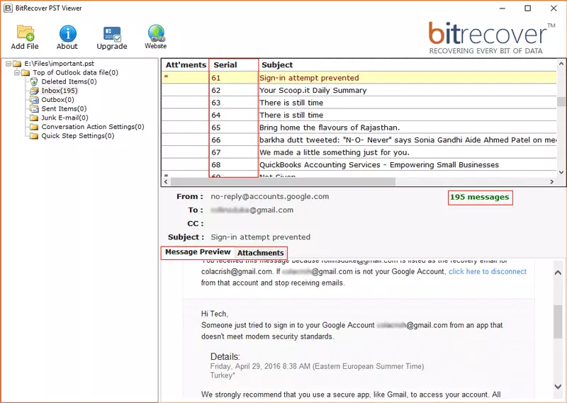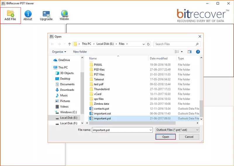 For at få adgang til PST-fil uden Outlook fra en anden computer, skal du blot ændre formatet på din PST-fil ved hjælp af værktøjet fra BitRecover.