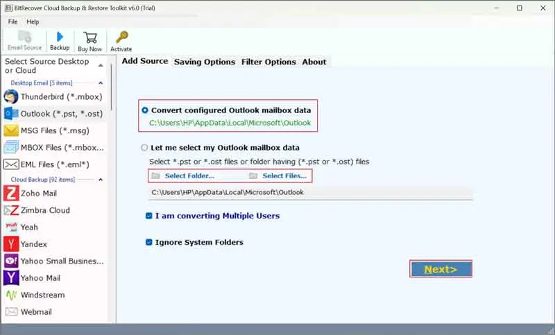 De manuelle metoder beskrevet ovenfor kan være det perfekte valg til at gendanne slettede e-mails i Gmail, men begrænsningerne begrænser deres brug. Derfor er den bedste måde at gendanne slettede e-mails fra Gmail-konto ved at bruge et automatiseret værktøj, der sikrer, at der ikke tabes data. Vi diskuterer et værktøj, du kan bruge til at gendanne slettede Gmail-e-mails – denBitRecover Cloud Backup and Restore Wizard.