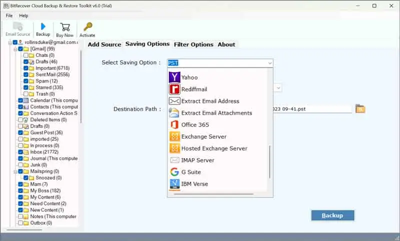 - VælgeGmailfra listen over30+ sparemulighederfor at gendanne slettede Gmail-e-mails.
