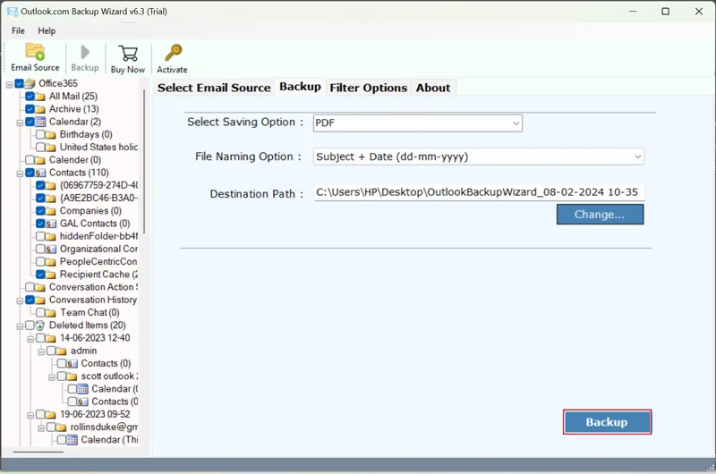 - Aktiver yderligere filtretil selektivt at konvertere Hotmail til PDF.