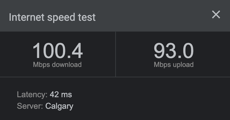 Jeg testede en sidste Hola VPN-server, og det var Calgary i Canada. Det viste sig at være den mest imponerende hastighedsforbindelse ud af de tre tests på omkring 100 Mbps.