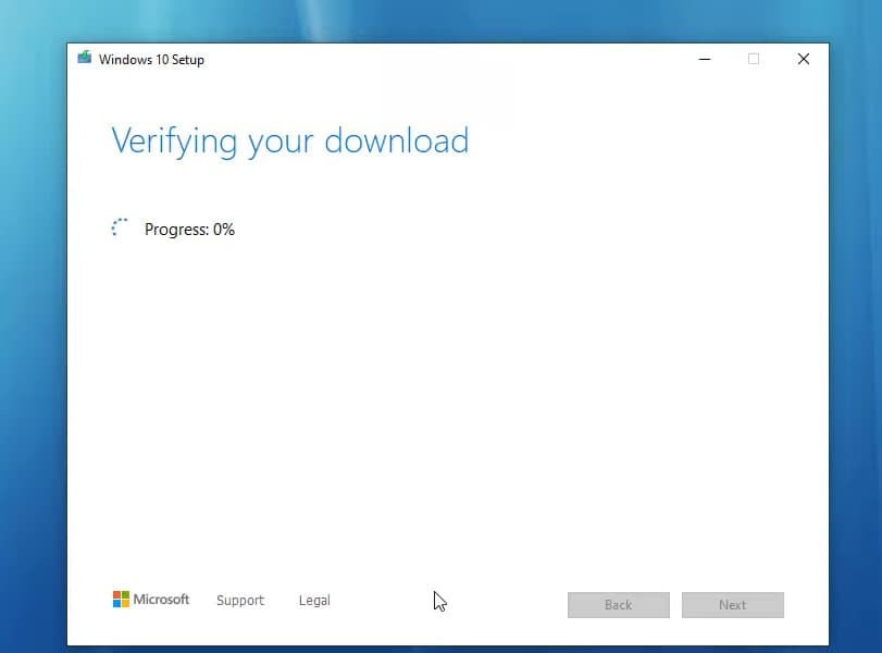 - Når det er gjort, begynder det at oprette Windows 10-medier. Vent på, at dette trin er fuldført. Opsætningen vil gennemgå en række trin.