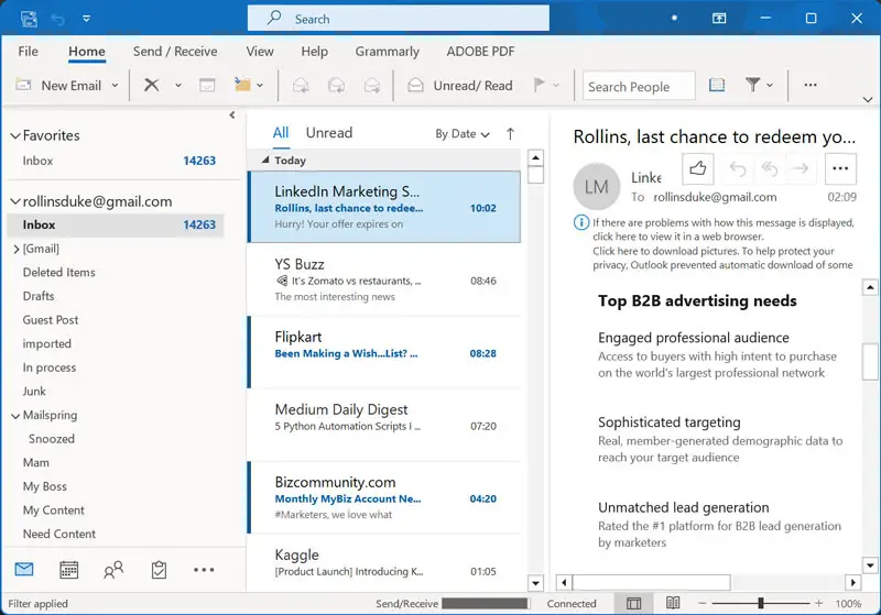 - Først åbenMicrosoft Outlookvælg derefter e-mail-mapperne.
