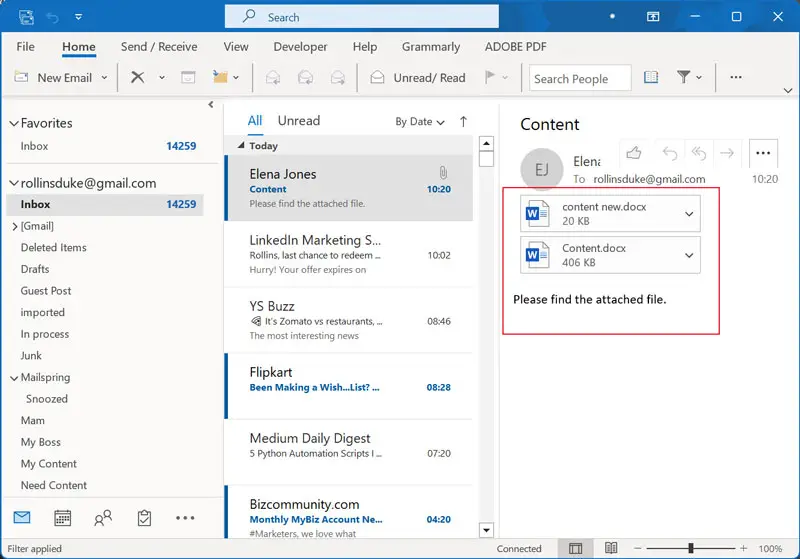 - Nu,scroll nedog åbn de e-mails, der indeholdervedhæftede filer.