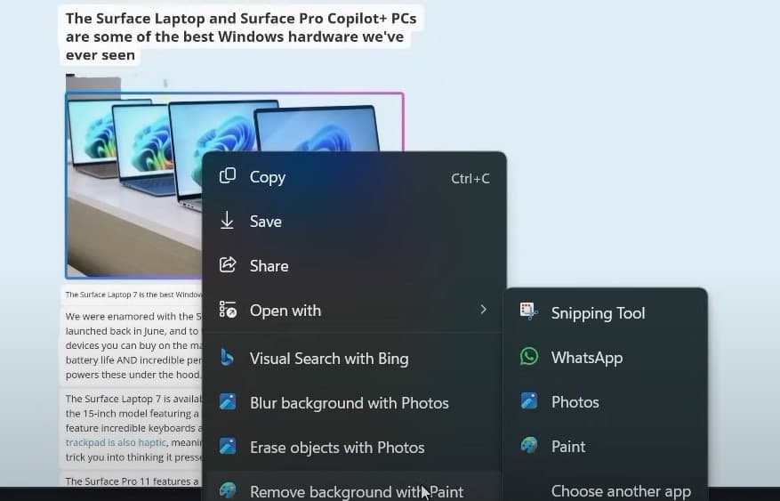Hvis der er tekst, kan du fremhæve den, kopiere den eller åbne den i Notesblok. Du ved, at Click to Do er aktiv, fordi din musemarkør ændres til en blå og hvid stil. Click to Do gemmer indhold midlertidigt, når du bruger en mulighed, der sender indhold til en app, såsom Notesblok eller Paint. For mere information, seKlik at gøre i tilbagekaldelse.