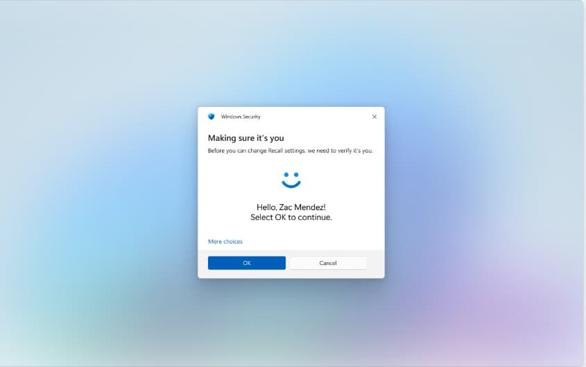 Hver gang du åbner Genkald eller ændrer dens indstillinger, vil den bede dig om at bekræfte din identitet ved hjælp afWindows Hej, hvilket kunne være dit ansigt, fingeraftryk eller pinkode. Dette gøres for at sikre, at kun du kan se eller interagere med dine gemte snapshots. Dine data er krypteret og beskyttet, så de forbliver private og sikre.