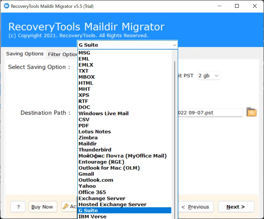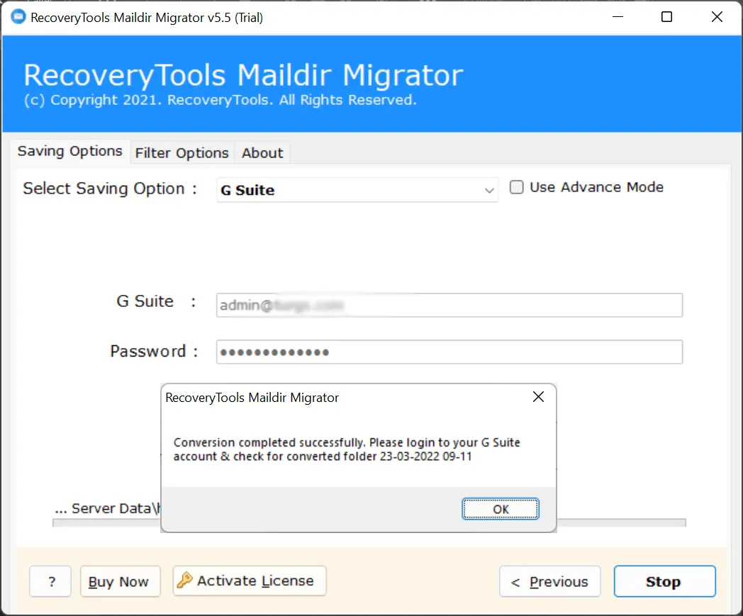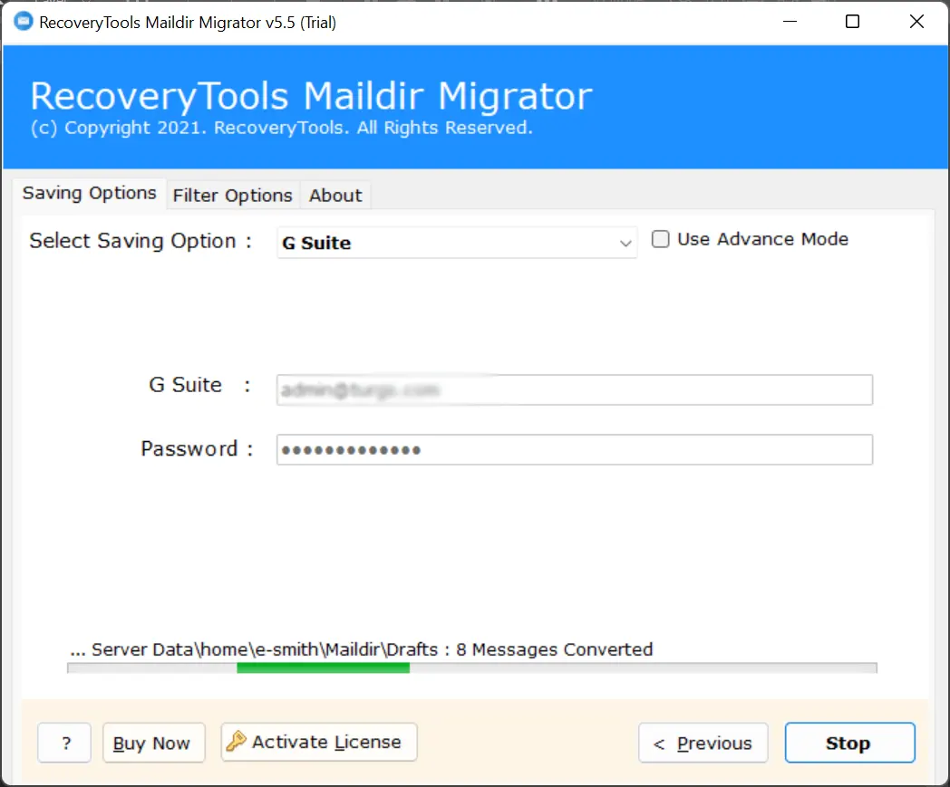 BitRecover Maildir Converterer en ekspertanbefalet alt-i-en-løsning til at migrere SME Mail til G Suite, Office 365, Gmail, Yahoo, Outlook.com, Exchange Server osv. Faktisk gemmer SME Mail Server sine e-mail-data i Maildir-format, og foreslået software kan importere Maildir-filer til G Suite såvel som andre cloud-baserede tjenester.