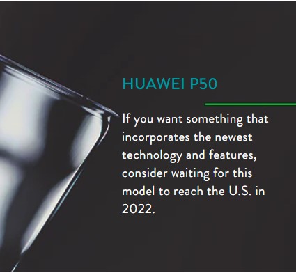 Huawei P50 har en6,6 tommer skærmmed en høj pixel opløsning, der overgår andre smartphone-modeller og har mere lagerplads for bedre telefonfunktionalitet. Den nye mobiltelefon vil have fire kameralinser, hver med sine egne forbedringer fra tidligere modeller - et teleobjektiv, et monokromt kamera, et ultravidvinkelobjektiv og et kraftigt optisk zoomobjektiv. Hver vil forbedres i kvalitet og opløsning for at skabe et mere kraftfuldt mobiltelefonkamera.
