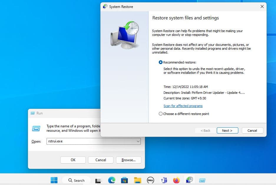 - Tryk på Windows-tasten + R, skrivrstrui.exeog klik på ok for at åbne systemguiden,