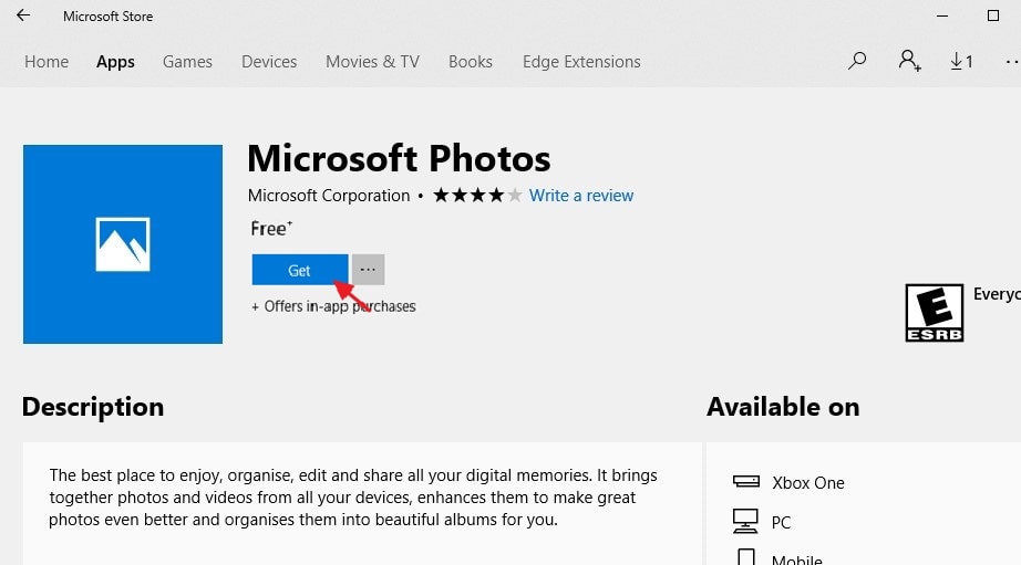Genstart nu Windows og åbn Microsoft Store og Søg efter Microsoft Photos for at installere det på din computer.