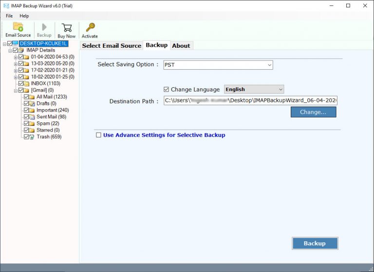 For at importere e-mails fra One.com-e-mail til Gmail-konto, skal du førstdownload IMAP mail backup værktøj til Windows. Denne software er kompatibel med alle nyeste og ældre versioner af Microsoft Windows-operativsystemer såsom Windows 10, Windows 8.1, Windows 8, Windows 7, Windows XP, Windows Vista osv.