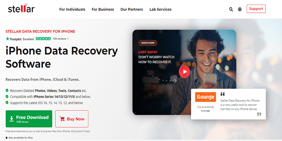 | Stellar Toolkit til iPhone | Avancerede datagendannelsesfunktioner sammen med evnen til at slette uønskede data | Windows 10 og macOS Big Sur 11 | $59,99/år | Ja |