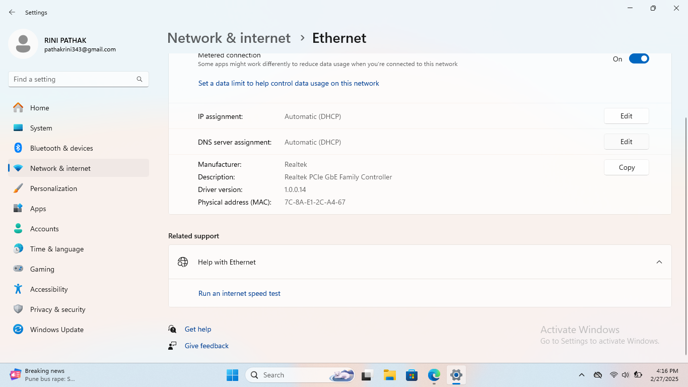 Trin 2-Vælg nu fanen Ethernet eller Wi-Fi i henhold til den aktive Wi-fi-forbindelse.