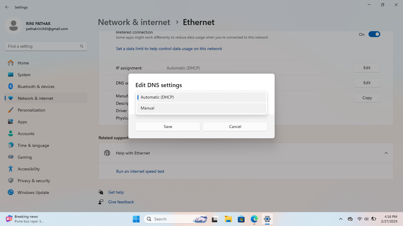 Trin 3-Vælg derefter indstillingen Rediger ud for DNS-servertildelingen.