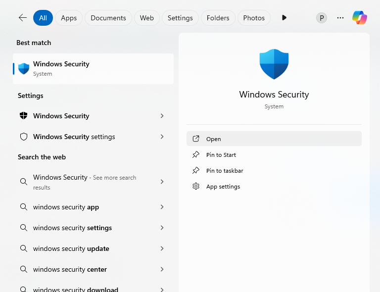 Trin 1-Gå til Start og søg Windows Security. Åbn det øverste resultat.