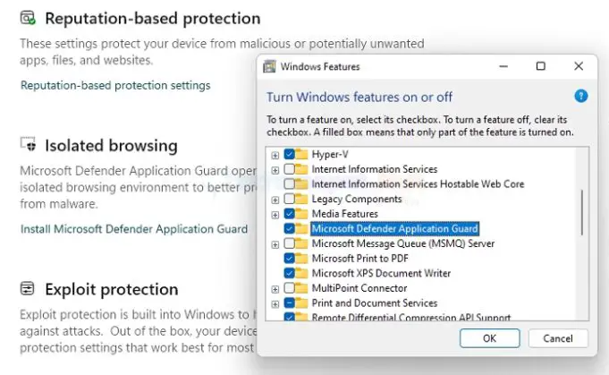 Windows 11 består af en indstilling ved navn Microsoft Defender Application Guard, som sikrer pc'en mod upålidelige websteder og filer. Det blokerer adgangen til pc'ens ressourcer for de uønskede websteder. Således kan man nemt tænde denne funktion og beskytte pc'en ved at bruge nedenstående trin-