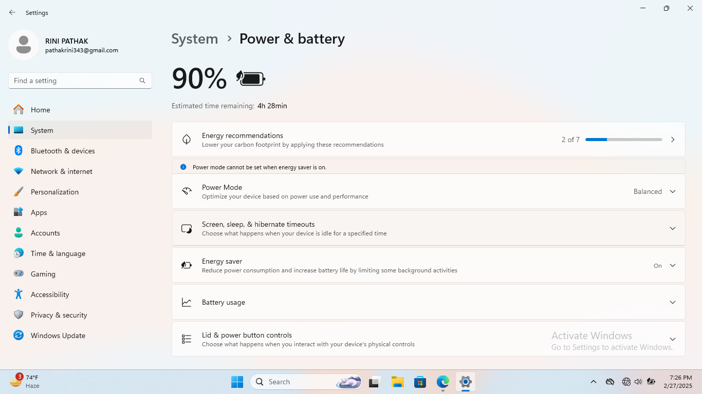 Trin 1-Gå til Indstillinger> System> Strøm og batteri fanen. Vælg derefter indstillingen Skærm, dvale og dvale-timeouts.
