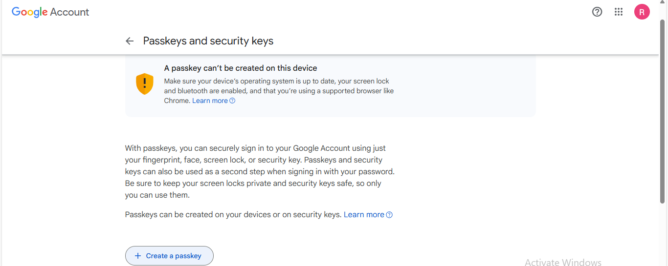 Trin 3-Aktiver adgangsnøgle-login, og vælg Opret en adgangsnøgle.