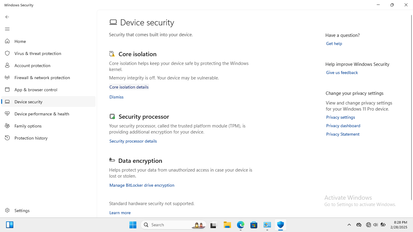 Core Isolation består af en masse sikkerhedsindstillinger såsom Memory Integrity, som sikrer pc'en mod ødelæggende vira og hackere. Det sikrer pc'en mod skadelig software og sikrer et forbedret sikkerhedssystem i pc'en.