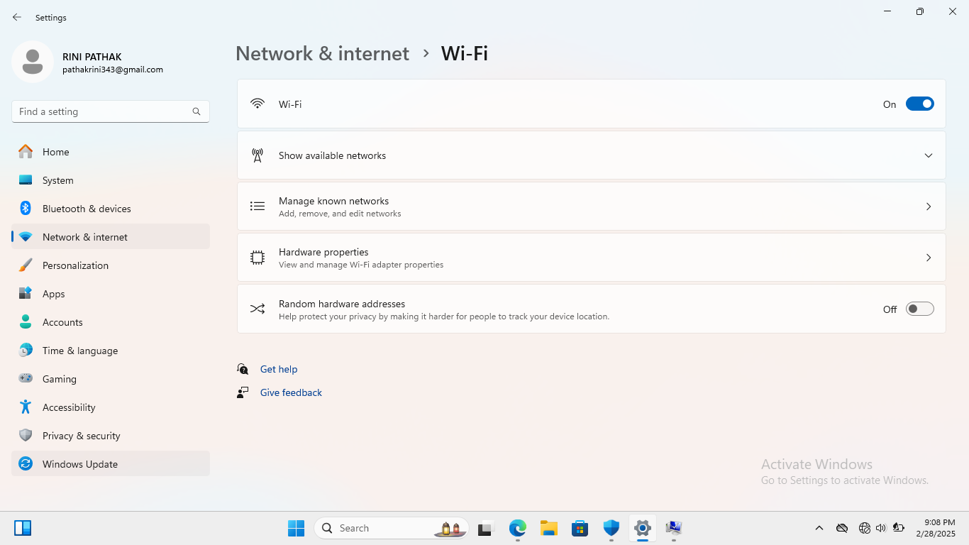 Trin 2-For det andet skal du aktivere eller deaktivere de tilfældige hardwareadresser i henhold til kravet.
