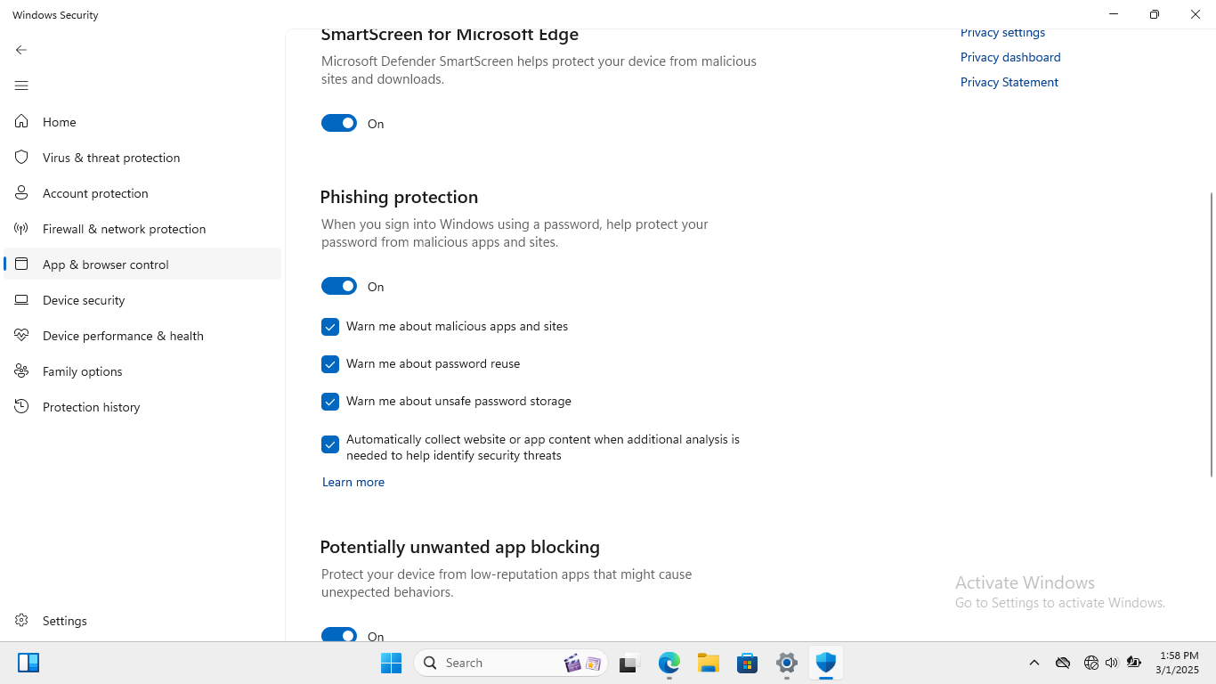 Trin 4-Til sidst skal du, hvis det kræves, aktivere Microsoft Defender SmartScreen.