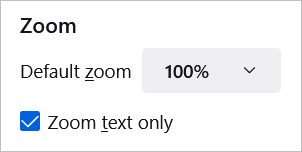 Gå tilbage til for at vælge en standardzoomApplikationsmenu>Indstillinger>Generel. I denSprog og udseendesektionen skal du bruge rullemenuen til at vælgeStandard zoomstørrelse. Du kan eventuelt kun zoome ind i teksten ved at markere det felt.