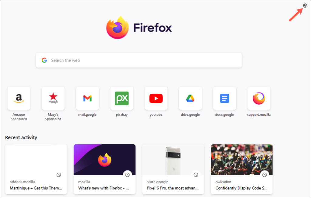 Du kan også hurtigt ændre, hvad du ser på din startside ved hjælp afgearikonet øverst til højre på den.