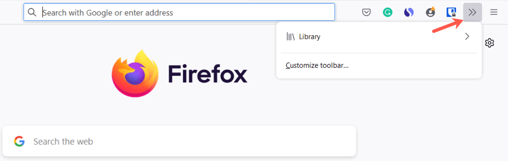 Du kan få adgang til din overløbsmenu ved hjælp af dobbeltpilene i højre side af værktøjslinjen.