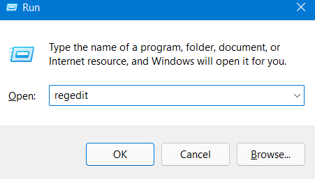 1.I første omgang skal du åbneLøbedialogboksen. For dette skal du trykke påWindows + Rtasterne samtidigt på dit tastatur. Når du har åbnet, skrivregediti dialogboksen Kør for at åbneRegistreringseditor.