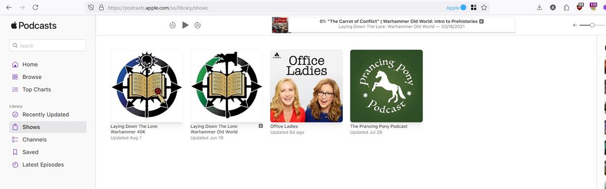 Bemærk: Apple Podcasts kræver, at Google Widevine-pluginet er installeret i din browser, hvis du ikke har det, vil afspilningen mislykkes.