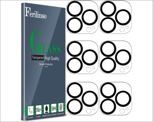 Denne kameralinsebeskytter er lavet af 9H-hårdhed hærdet glas, som også kommer med en EZ fit-bakke, der hjælper dig med at installere kameralinsen oven på din kamerabump. Denne beskytter kommer i to stykker og har en oleofobisk belægning for at beskytte den mod at få pletter og tryk. Dette er også kompatibelt med alle mulige Spigen sager.