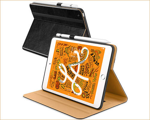 Ztotop er kommet med et klassisk folio-etui til iPad mini 5. Coveret praler af glat syntetisk læder udvendigt med pænt håndværk.