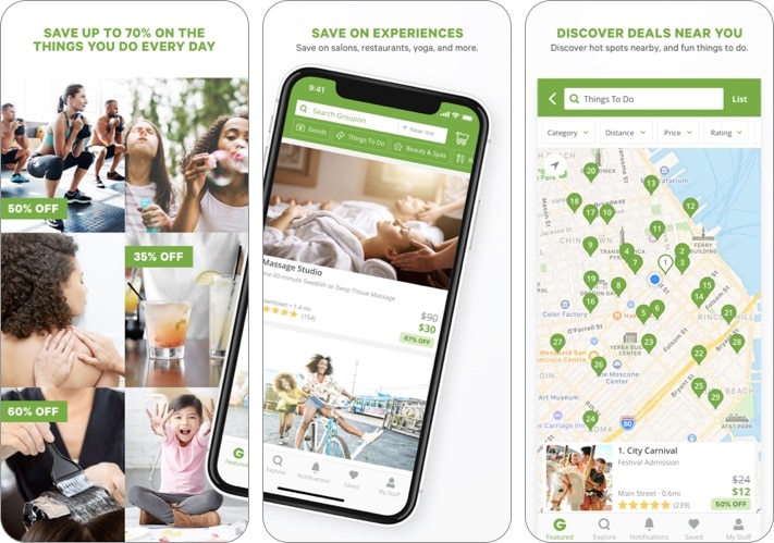 Groupon er en USA-baseret e-handelsvirksomhed, der tilbyder virtuelle kuponer til populære digitale tjenester, hotelkæder og mere. Du skal blot downloade appen, give relevant placeringstilladelse og begynde at udforske lækre tilbud omkring dig.